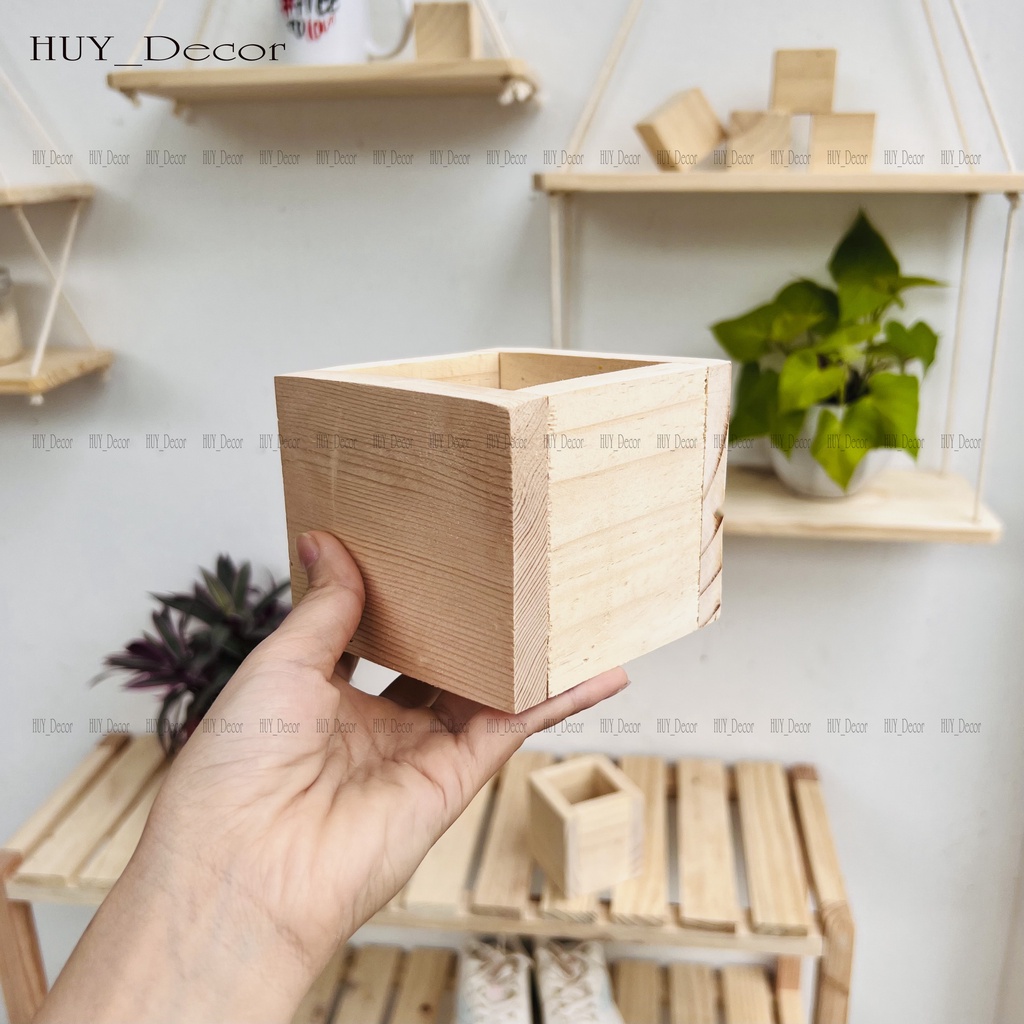 [chậu gỗ ] vuông trồng cây để bàn -HUY_Decor