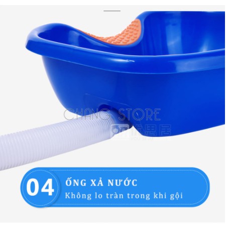 - Thiết kế dễ sử dụng, tiện lợi, có chỗ gối kê đầu lên, và lỗ kèm ống thoát nước, chất thải sẽ chảy theo đường ống thoát. Cạnh cong cong đặt vào cổ mang cảm giác thoải mái y như gội ngoài hàng.
