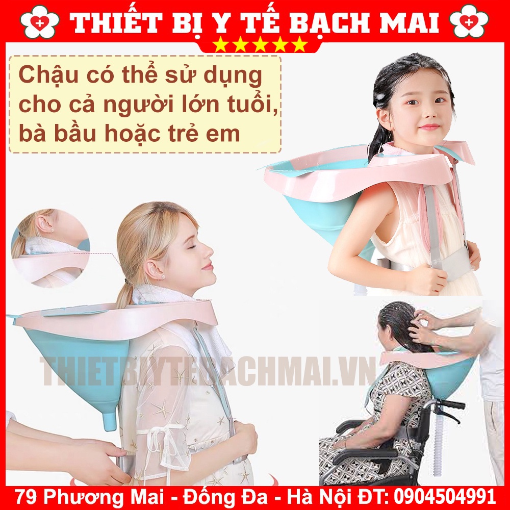 Có thể sử dụng gội đầu trong tư thế ngồi hoặc tư thế nằm quay đầu ra ngoài giường nằm.