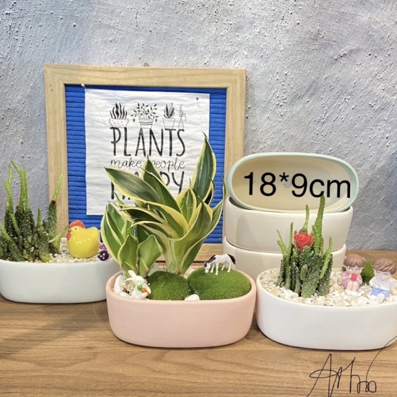 Chậu thuyền hình oval 18*9cmChậu hình oval rất thích hợp mix các cây sen đá, xương rồng, lưỡi hổ,.. kết hợp các cây nhỏ và vật trang trí làm tiểu cảnh dễ thương.
