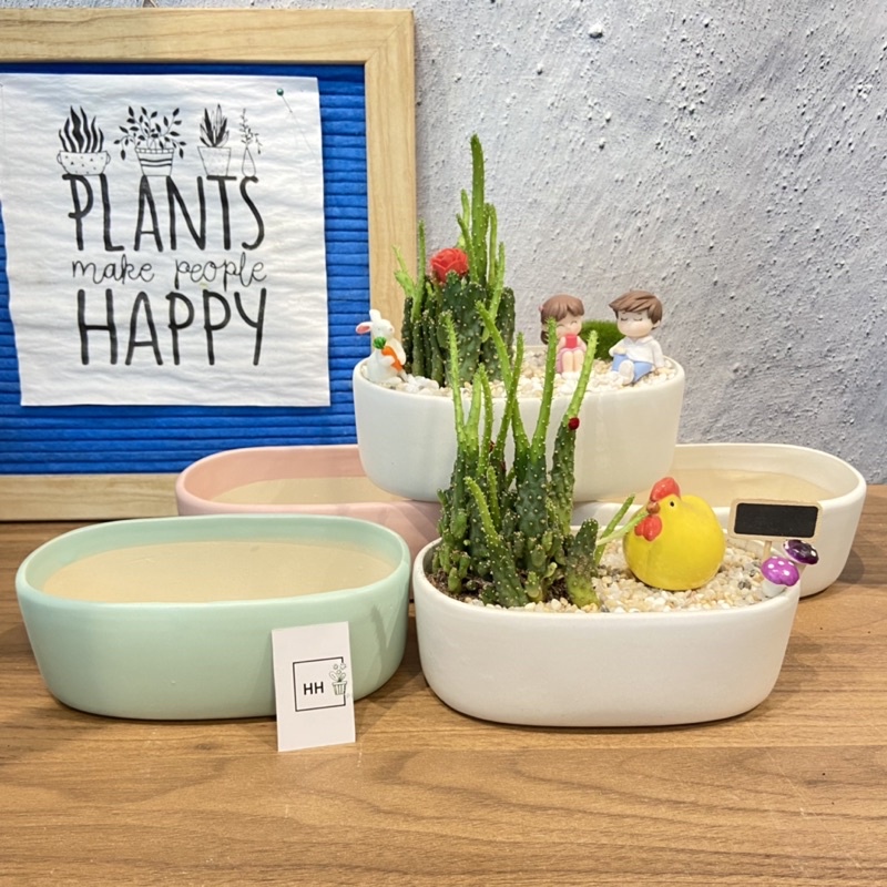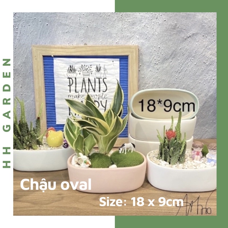 Nhà cửa & Đời sống > Làm vườn > Chậu cây || Chậu gốm hình Oval 18*9cm, chậu trồng cây để bàn, sen đá xương rồng tiểu cảnhCòn hàng