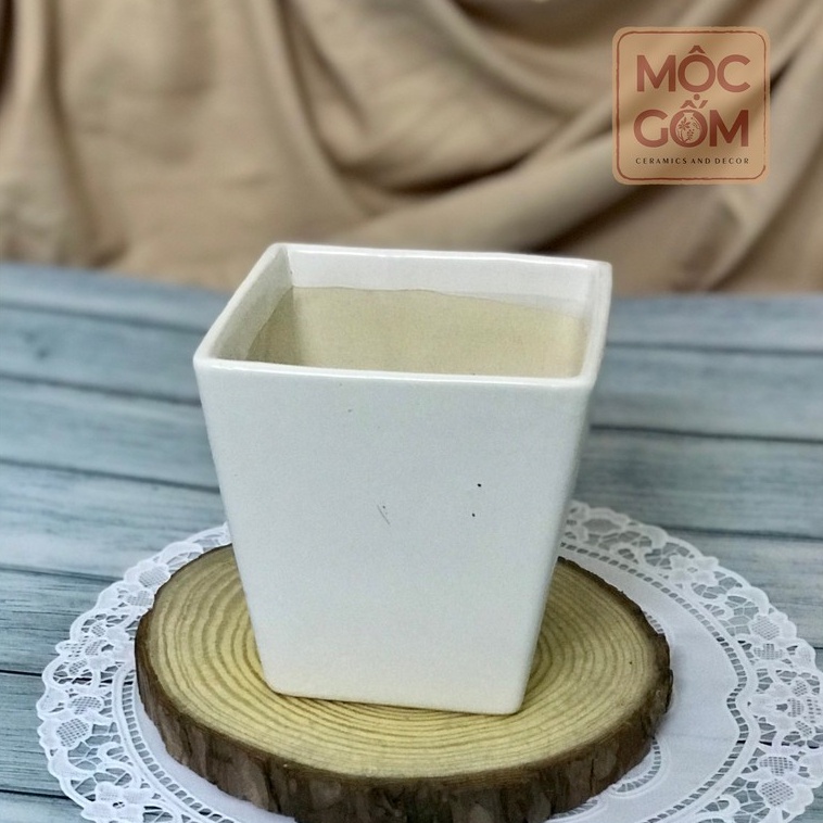 Nhà cửa & Đời sống > Trang trí nhà cửa > Bình trang trí || Chậu gốm trồng cây Bát Tràng đáy có lỗ men trắng - Mộc GốmCòn hàng
