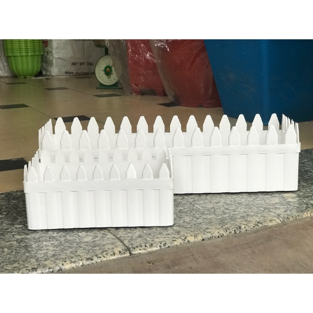 Chậu hàng rào nhựa trắng được đúc bằng nhựa PP tốt. Độ dày vừa phảiHoạ tiết gân nhám đơn giản nhưng vẫn không kém sang