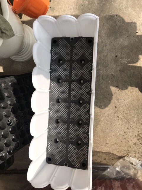 Mỗi chậu đều có tấm lưới lót giúp giữ ẩm cho cây trồng.