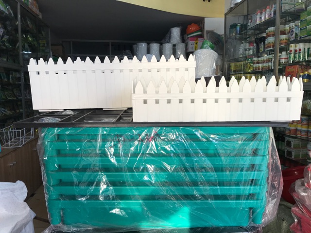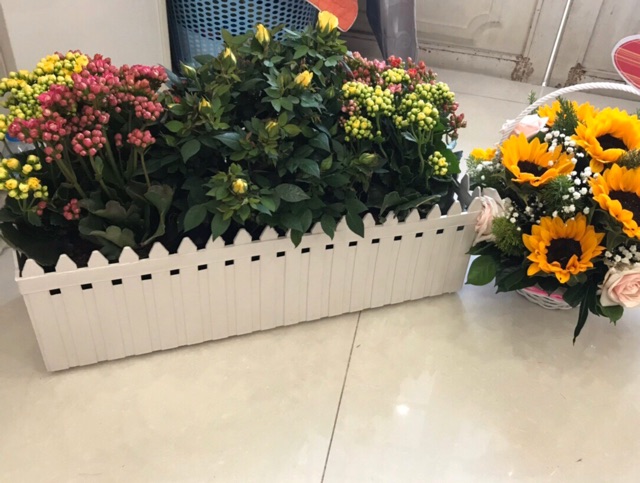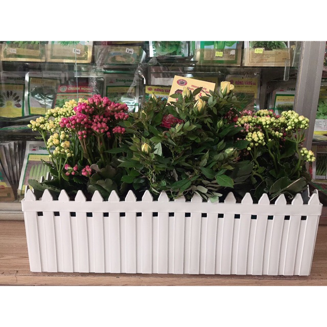 Chậu hàng rào trắng. Nhựa nguyên. Kiểu dáng đơn giản. ĐẹpDẻo day, đay dặn. Cắm hoa giả hoặc trồng hoa thật đều rất đẹp