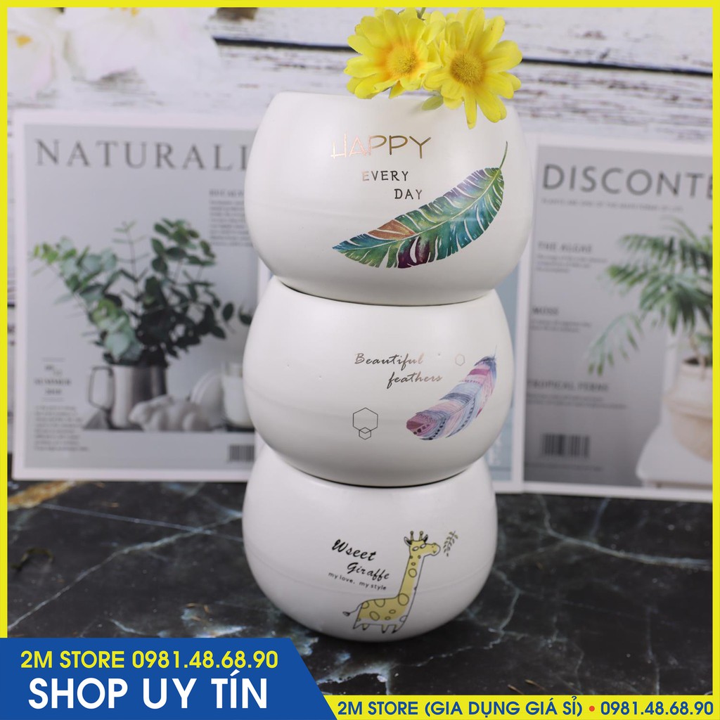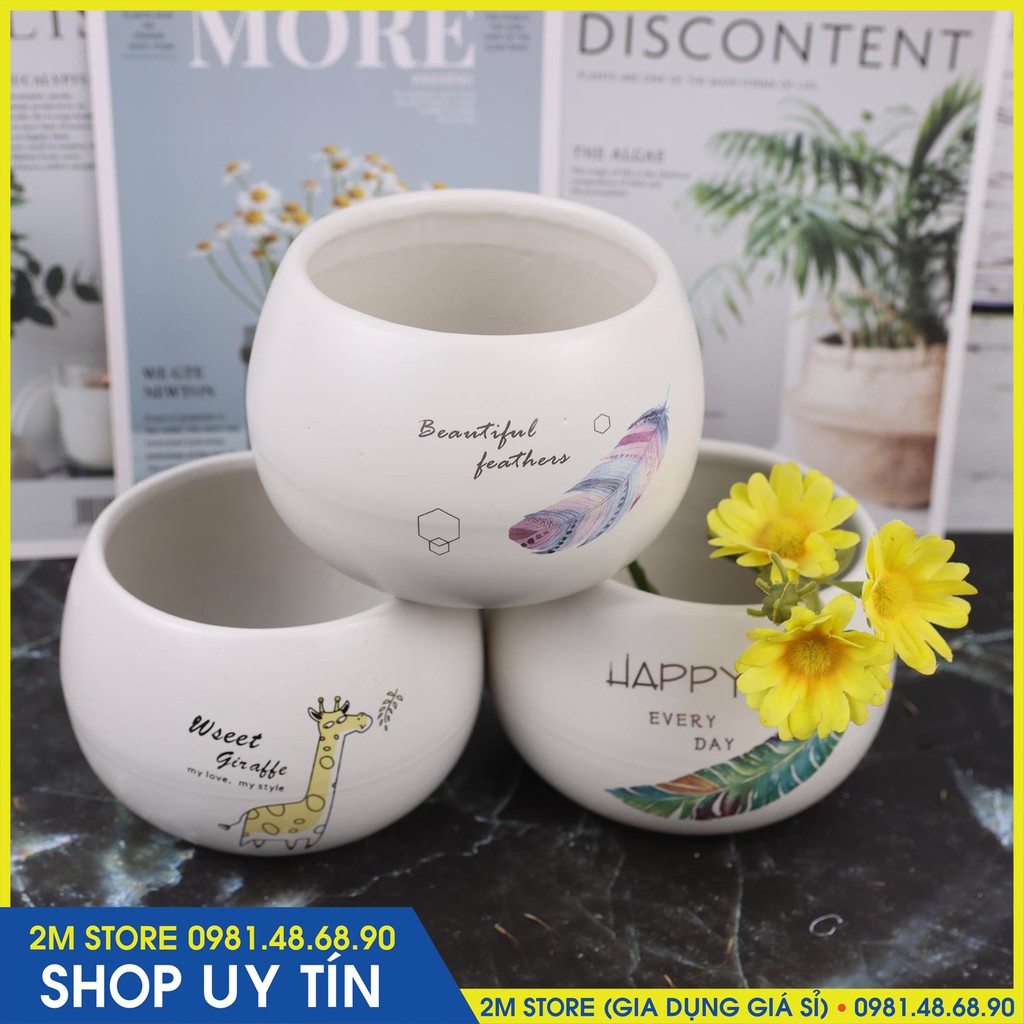 - Chậu men, in hình xinh xắn. Mang lại cảm giác sinh động và sang trọng.