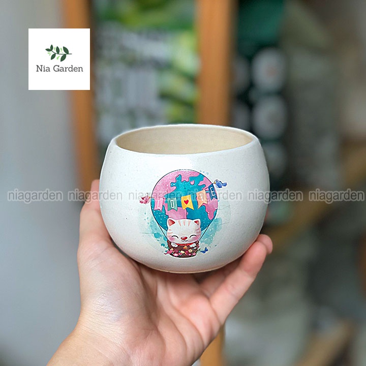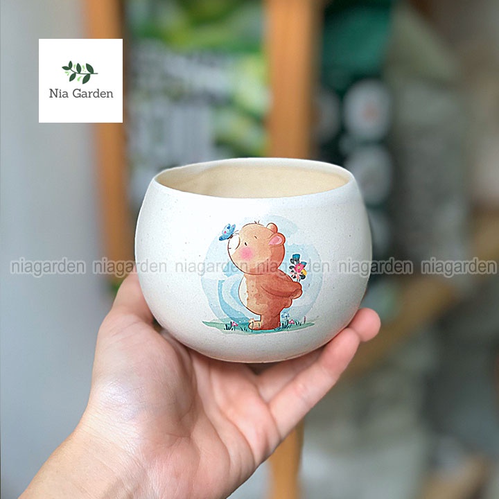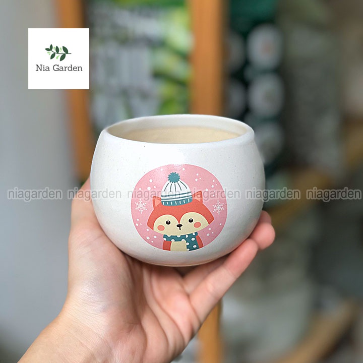 Chậu hạt dẻ in họa tiết 8x8cm trồng sen đá xương rồng cây để bàn mini Nia Garden N2