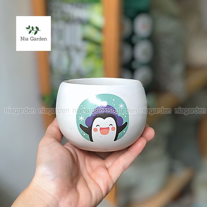 Giới thiệu Chậu hạt dẻ in họa tiết 8x8cm trồng sen đá xương rồng cây để bàn mini Nia Garden N2
