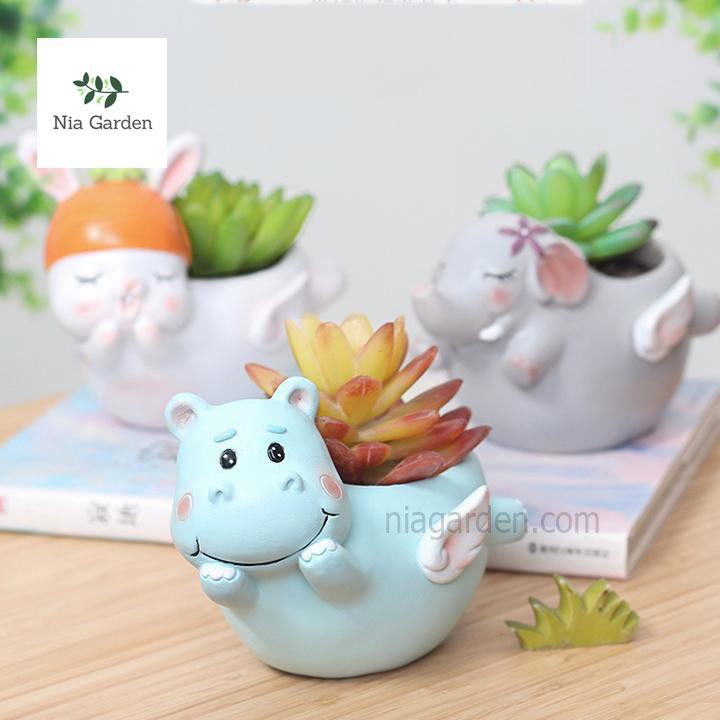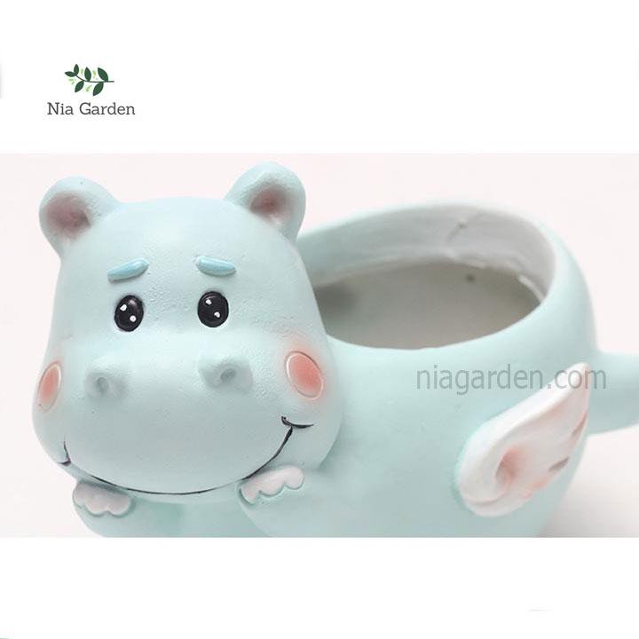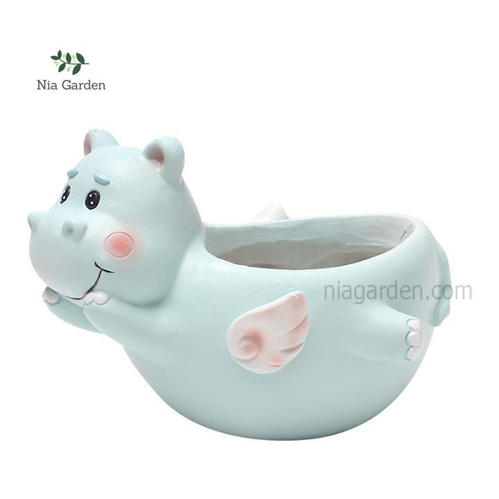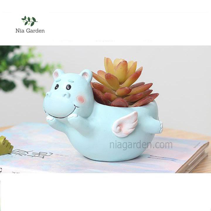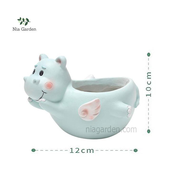 Chậu hình thú hà mã thiên thần trồng cây cảnh sen đá xương rồng mini Nia Garden N4