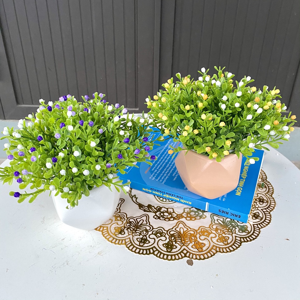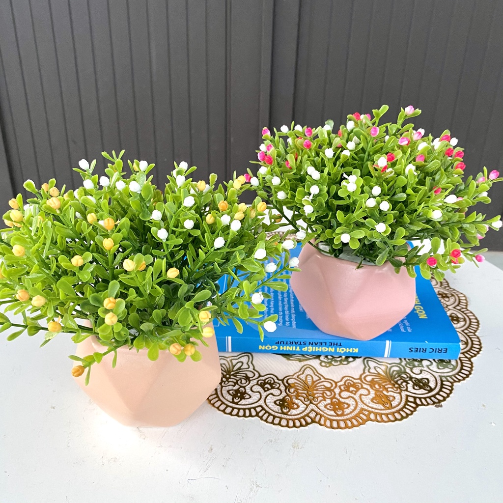 Giới thiệu (Chậu hoa cắm sẵn) Chậu hoa chiêm điểm cực xinh yêu để bàn trang trí - Màu chậu ngẫu nhiên