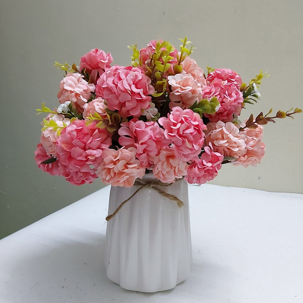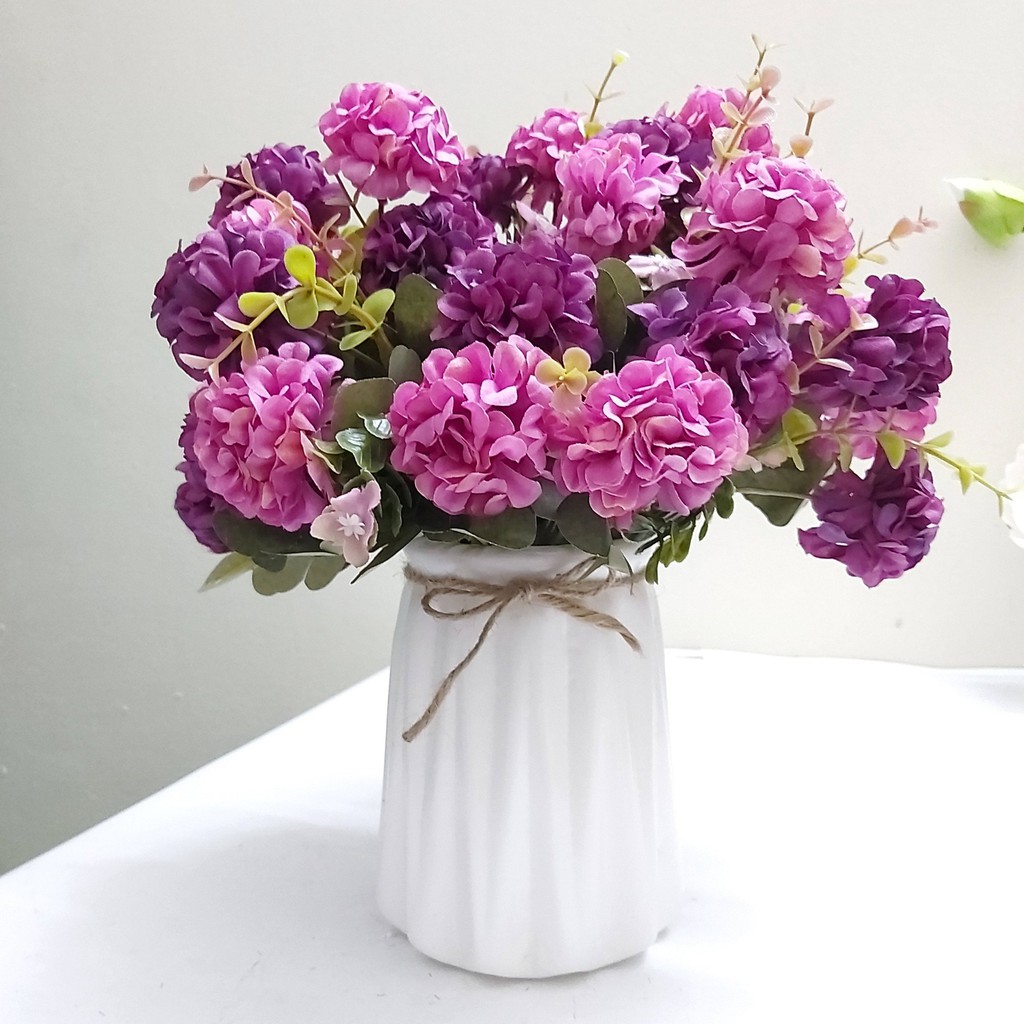 Chậu hoa cẩm tú cầu giả 35cm kèm bình gốm sứ trang trí nhà cửa phong cách hiện đại LTC-01