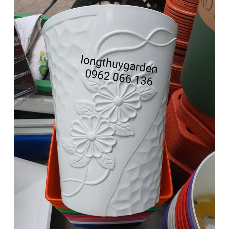 Nhà cửa & Đời sống > Làm vườn > Chậu cây || Chậu hoa đá in nổi 25x30cm màu trắngCòn hàng