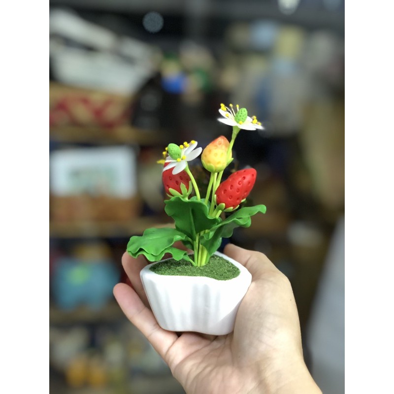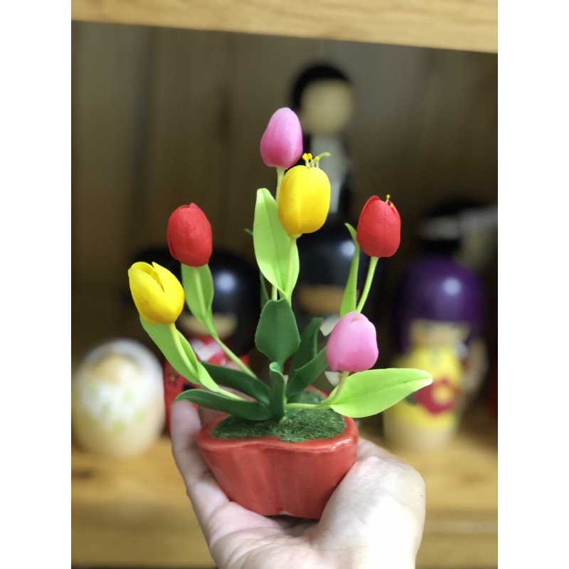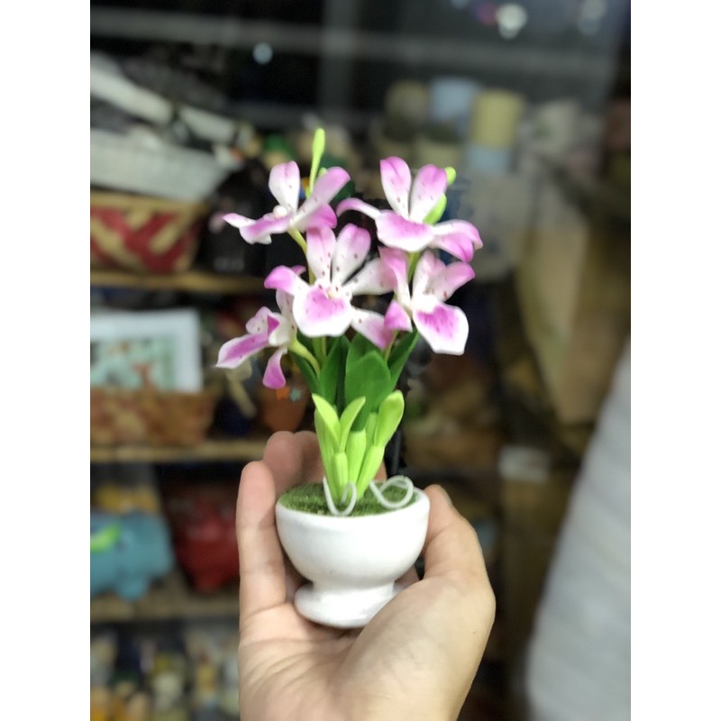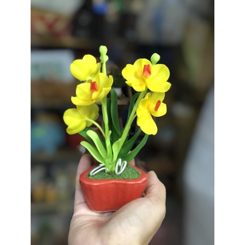 Chậu hoa đất sét để bàn, hoa được làm từ chất liệu đất sét nhìn sống động như thật.Chiều cao từ 15cm tới 17cm.