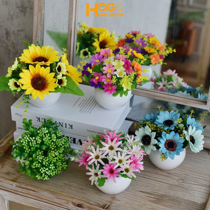 Nhà cửa & Đời sống > Trang trí nhà cửa > Hoa trang trí || Chậu hoa giả, chậu hoa mini kích thước cao 12-15cm cm cắm sẵn nhiều mẫu hoaCòn hàng