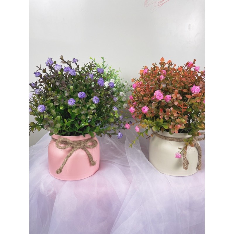 Chậu hoa giả để bàn -hoa nhí phong cách vintagesản phẩm bao gồm chậu đã cắm sẵn hoa như hình , có thắt nơ dây thừng siêu yêu