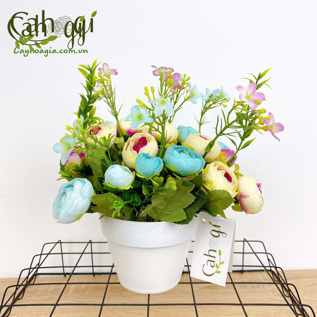 Chậu hoa hồng giả cổ điển siêu đáng yêu. Thích hợp làm quà tặng, trang trí kệ sách, bàn làm việc, cửa hàng, quán cafe trà sữa