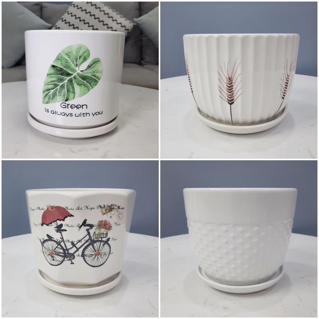 Chậu hoa gốm sứ size trung họa tiết - kèm đĩa đựng nướcChậu gốm sứ có kèm địa đựng nước, trồng cây, cắm hoa các kiểu rất xinh