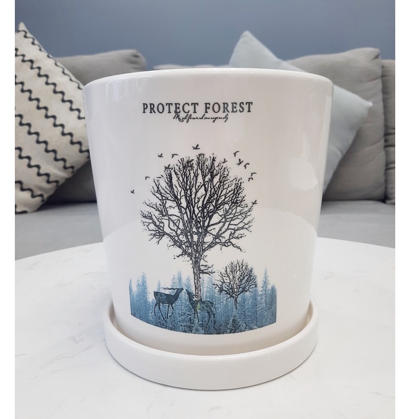 Chậu hoa gốm sứ hoạ tiết size trung trồng cây - có đĩa đựng nước