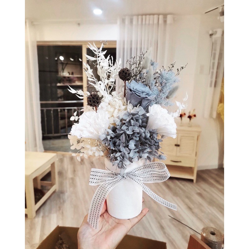 Nhà cửa & Đời sống > Làm vườn > Cây cảnh || Chậu hoa hồng bất tử tông xám bạc sang trọng trang trí nhà cửa, phòng kháchCòn hàng