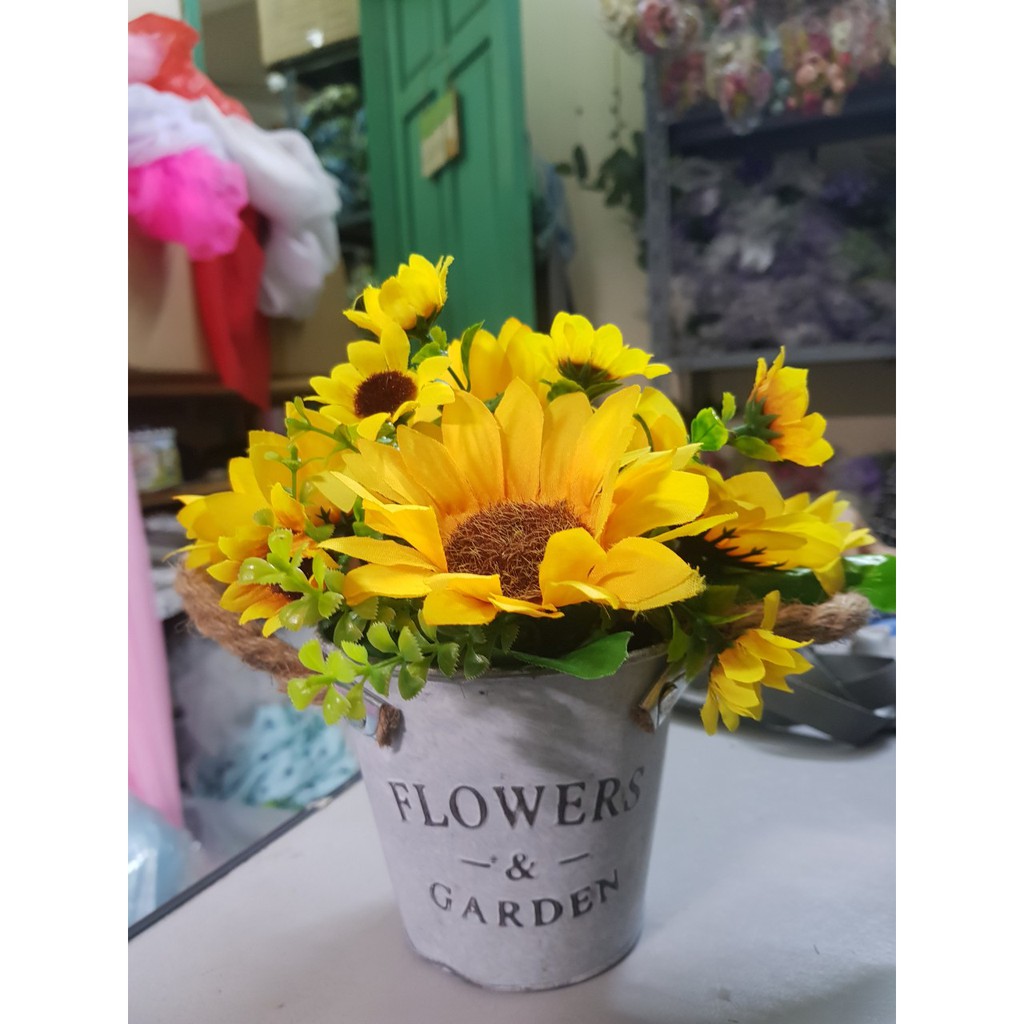 Chậu hoa thép được cắm sẵn hoa hướng dương màu sắc tươi sáng sẽ tô điểm cho không gian của bạn thêm sinh động, đầy sức sốngThông tin chi tiết: