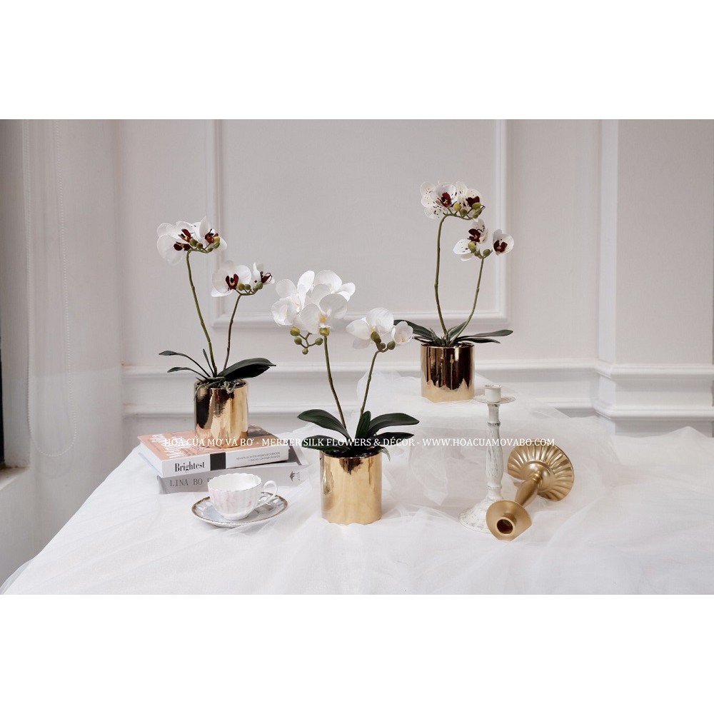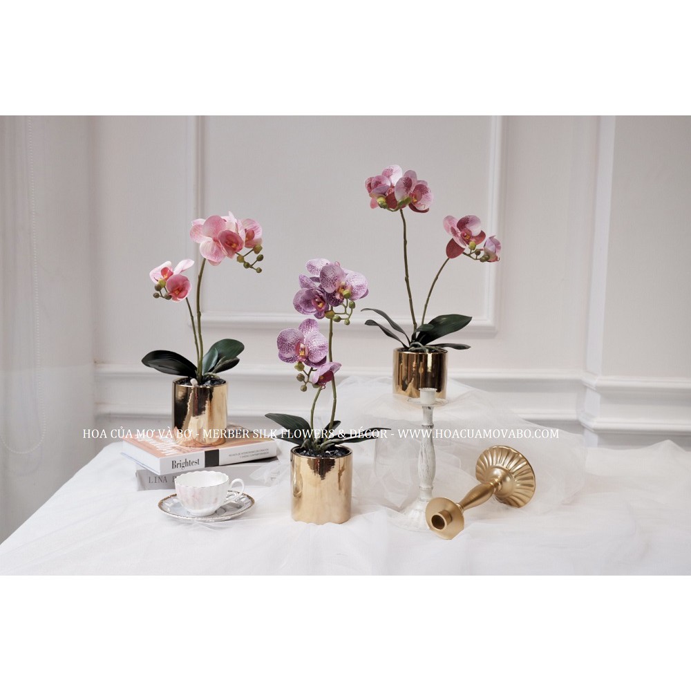 Chậu Hoa Lan Hồ Điệp Lụa Cao Cấp Merber Nhiều Màu - Chậu Lan Giả Thích Hợp Trang Trí Nhà Dịp Tết, Năm Mới, Decor Phòng