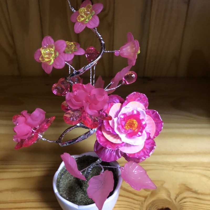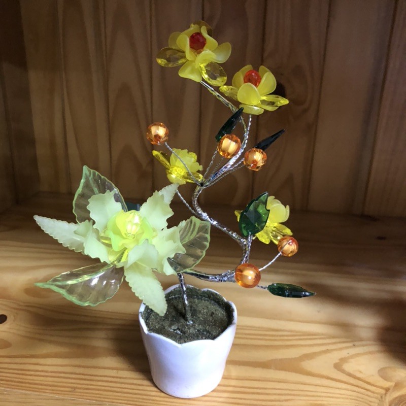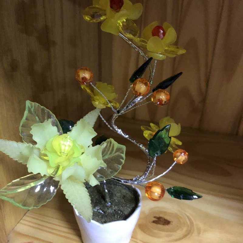 Nhà cửa & Đời sống > Trang trí nhà cửa > Bình trang trí || Chậu hoa mai vàng kết tay từ cườm và pha lê nhựa bình hoa để bànCòn hàng