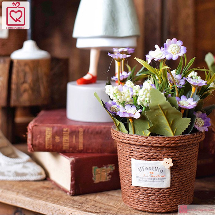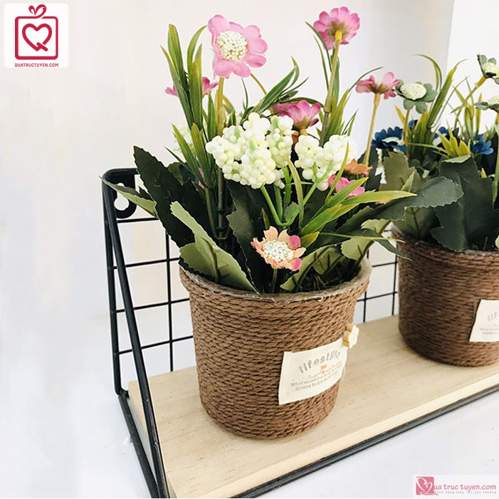 Giới thiệu Chậu hoa mây cuộn dây thừng trang trí phong cách vintage để bàn, kệ trang trí