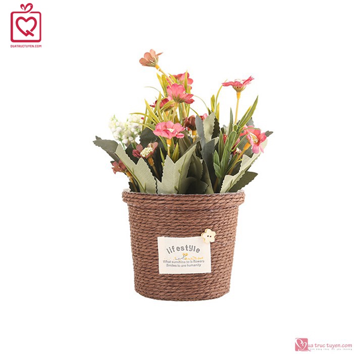 Nhà cửa & Đời sống > Làm vườn > Khác || Chậu hoa mây cuộn dây thừng trang trí phong cách vintage để bàn, kệ trang tríCòn hàng