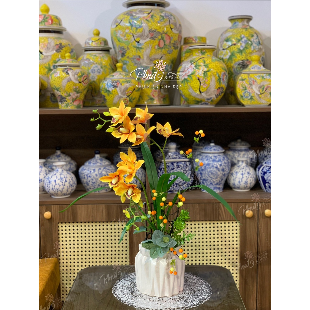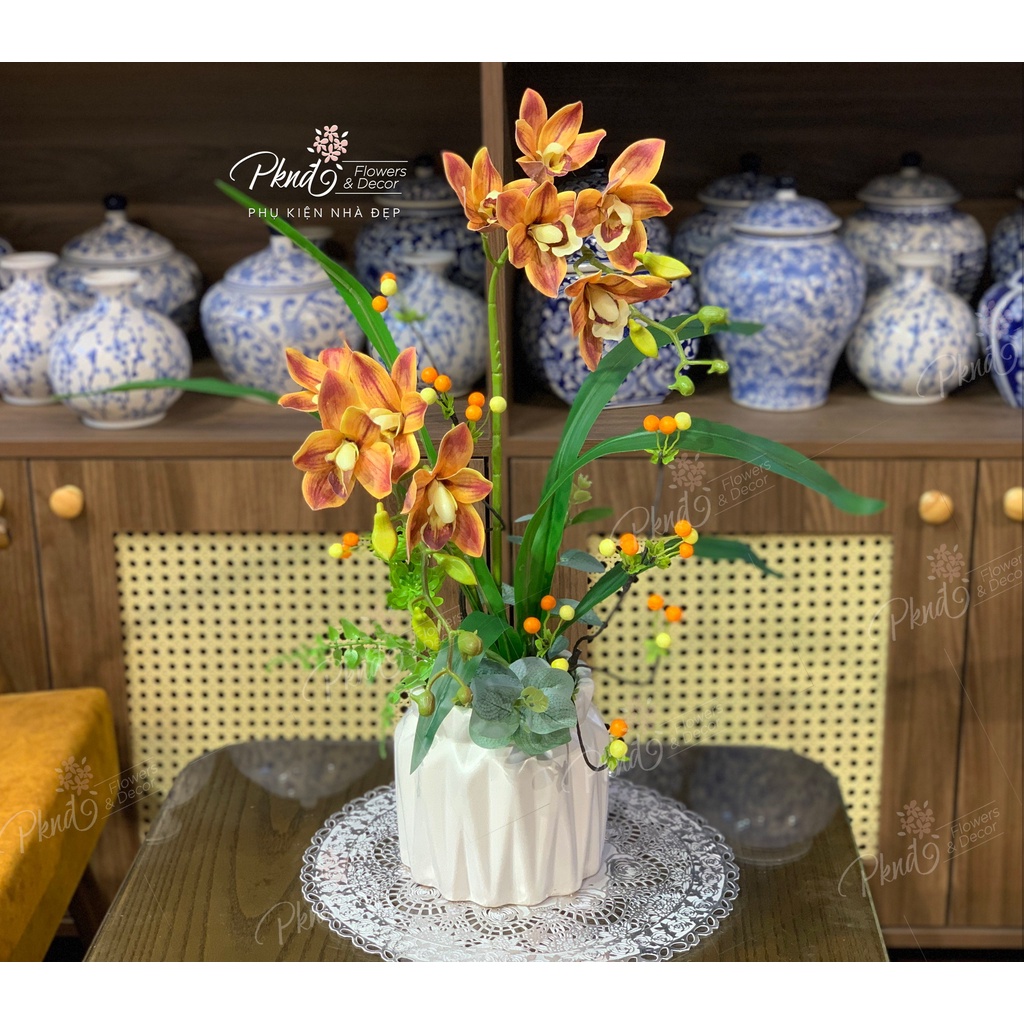 Nhà cửa & Đời sống > Trang trí nhà cửa > Hoa trang trí || [Mã LIFEMALL9944 giảm 50K đơn 99K] Chậu hoa địa lan giả để bàn đẹp PKND FLOWERS & DECORCòn hàng