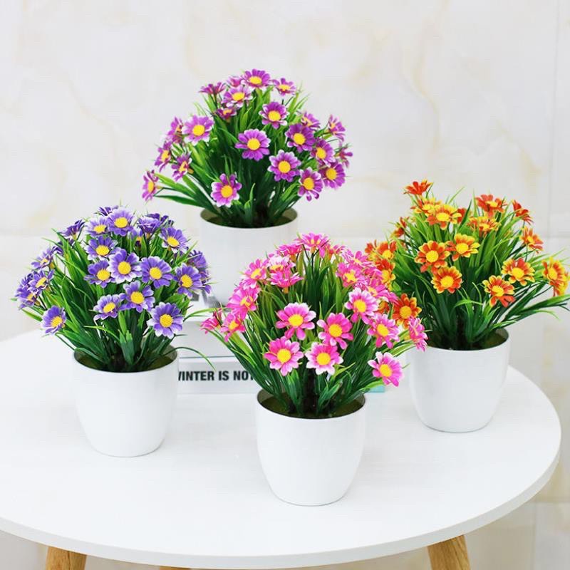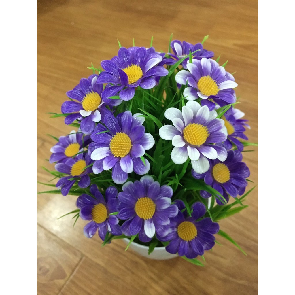 Chất liệu: chậu nhựa kèm hoa giả