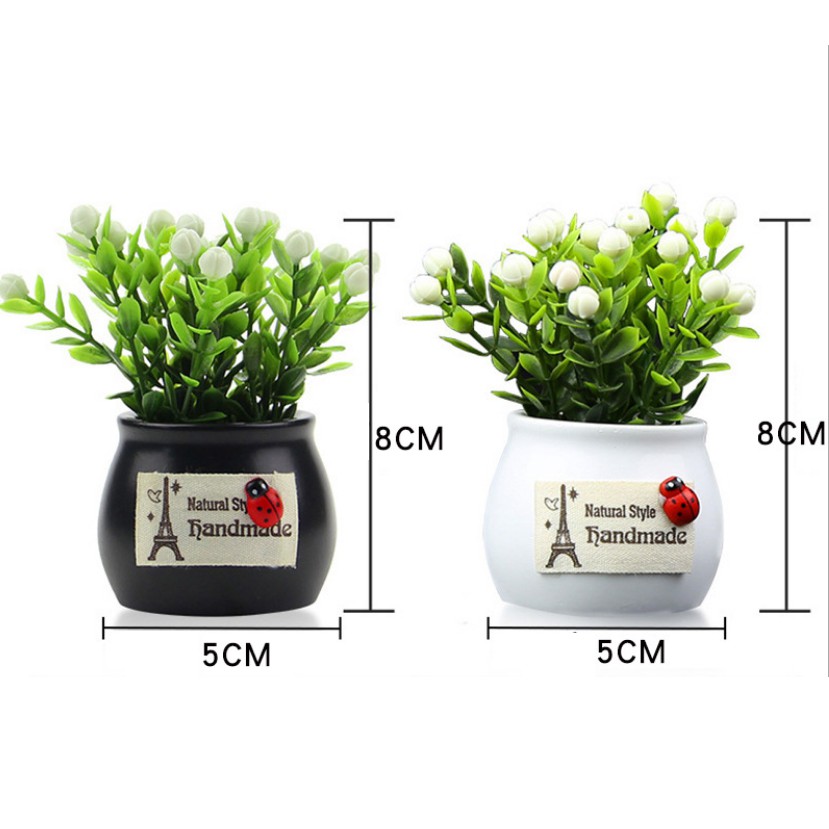 * Chậu hoa giả màu sắc tươi tắn sinh động. Thích hợp trang trí nhà cửa, chưng bày kệ, để bàn làm việc, trang trí quán shop .... hoặc làm quà tặng cho bạn bè người thân.* Kích thước chậu chỉ cao 8cm, đường kính chậu 5cm (hàng handmade có sai số nhỏ)
