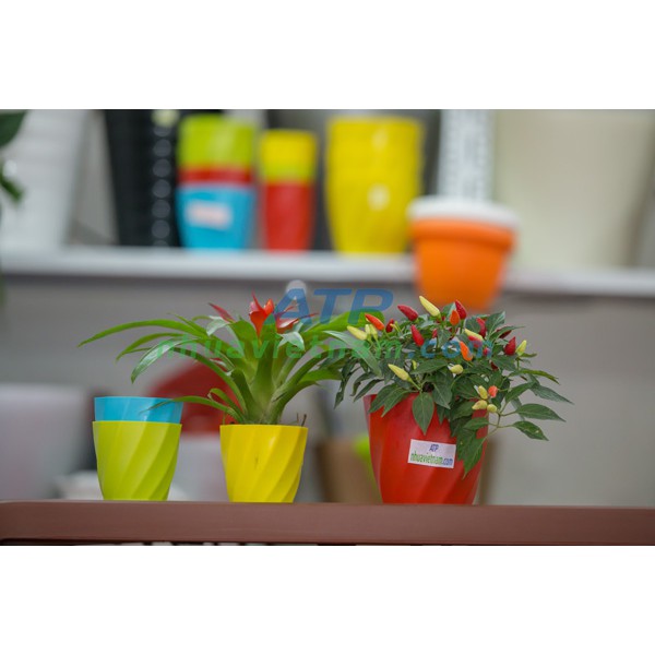 chậu hoa xoắn loại trung, hàng cao cấp kích thước rộng 13.2cm cao 12cm thích hợp trồng cây nhỏ