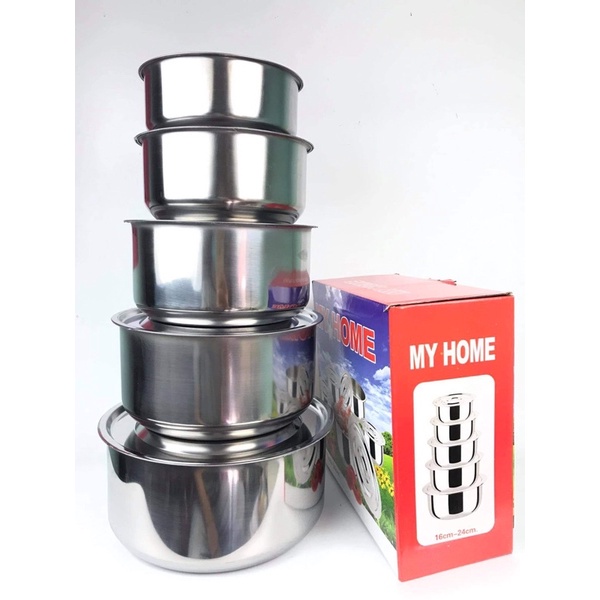 - Size : 10cm, 12cm, 14cm, 18cm,22cm ( set 5 bát inox có nắp đậy) có thể đun đc bếp từ khi cần hâm nóng đồ ăn