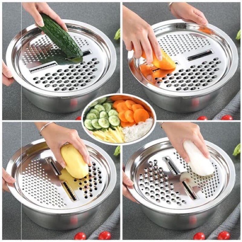 Nhà cửa & Đời sống > Dụng cụ nhà bếp > Bàn nạo, dụng cụ bào, cắt || Bộ Chậu Inox Kèm Rổ Nạo Sợi 3in1Còn hàng