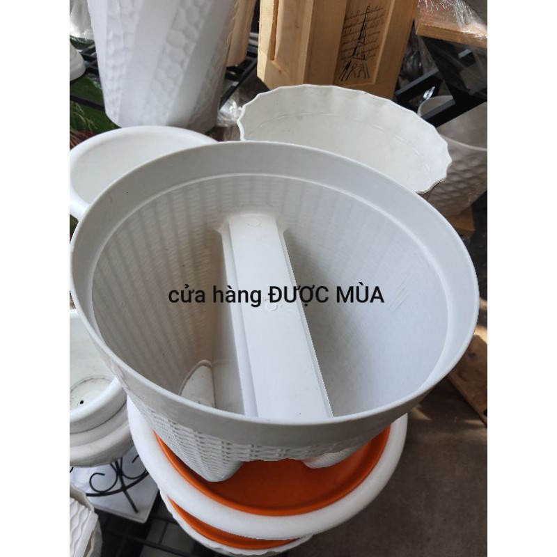 chậu nhựa trồng cây kiểu kẹp lan can.đường kính chậu 28cm, cao 25cm. khoảng cách để kẹp là 7cm.