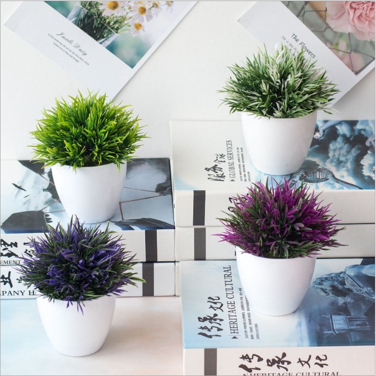 Chậu lá cỏ bonsai giả để bàn nhiều màu (kèm chậu cắm sẵn như mẫu)-Chậu hoa để bàn-Hoa giả trang trí nhà hàng cafe