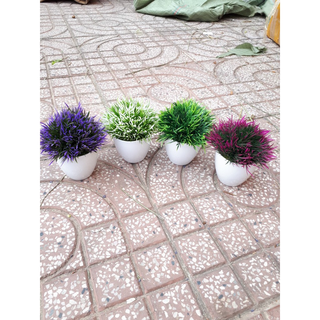 Chậu lá cỏ nhọn giả mẫu mới nhiều màu