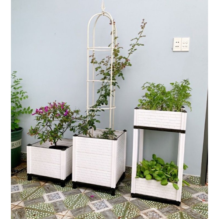 Chậu nhựa lắp ghép thông minh kích cỡ 80x40x35 cm dùng trồng cây, rauKích thước: dài 80cm, rộng 40cm, cao 35cm( tính cả chân)