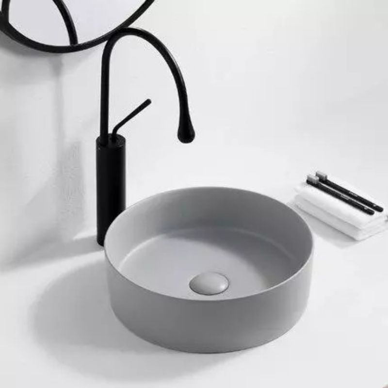 Chậu rửa lavabo tông màu ghi xám. Màu men siêu nhẵn mịn, trơn láng, ngoại quan siêu mượt, màu men ghi thuần sắc tạo cảm giác cao cấp. Sứ nung ở nhiệt độ cao tuyệt đối không phai màu.* Nguyên liệu: Sử dụng đất sét và những nguyên liệu tối ưu từ thiên nhiên