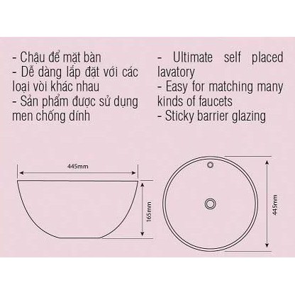 Loại : Chậu rửa Lavabo đặt trên bàn