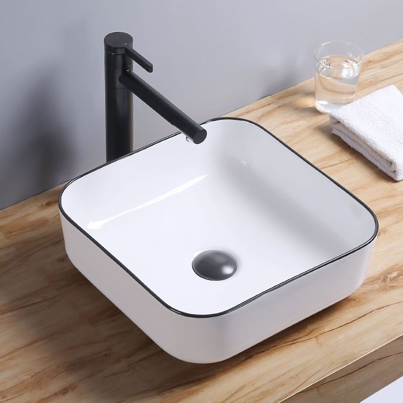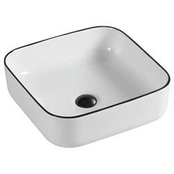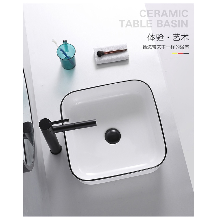 Nhà cửa & Đời sống > Dụng cụ & Thiết bị tiện ích > Chậu rửa & vòi nước || Chậu lavabo đặt bàn vuông tròn trắng viền kẻ đen cao cấp cách điệu mới lạ đặt nổi trên bàn .Còn hàng