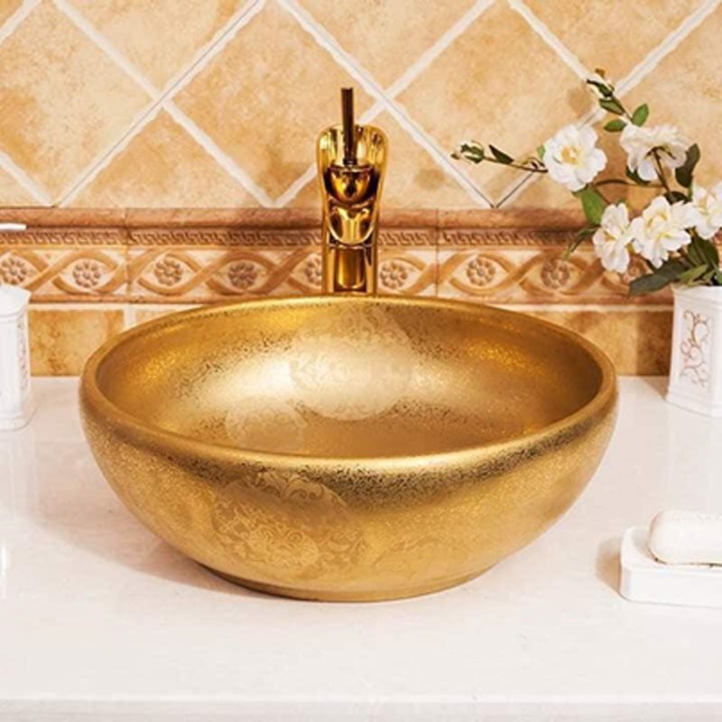 Chậu lavabo mạ vàng - Lavabo mạ vàng cao cấp✔Chậu rửa mặt KB6003