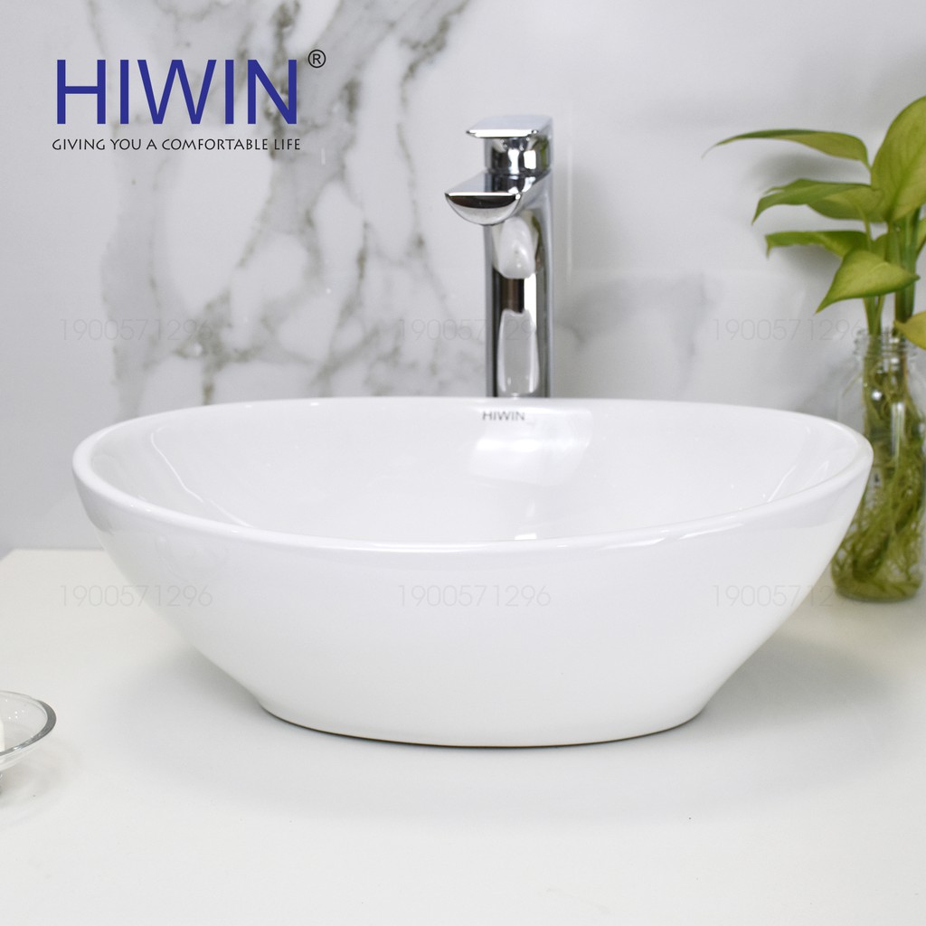 Chậu lavabo rửa mặt trắng sứ dáng elip độc đáo Hiwin LP-8020