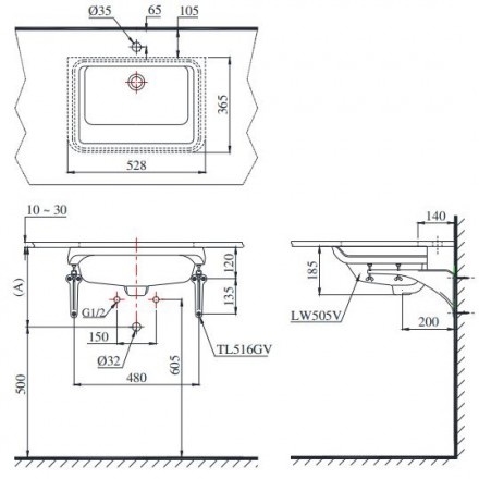 Bản vẽ lavabo âm bàn LT 505T TOTO