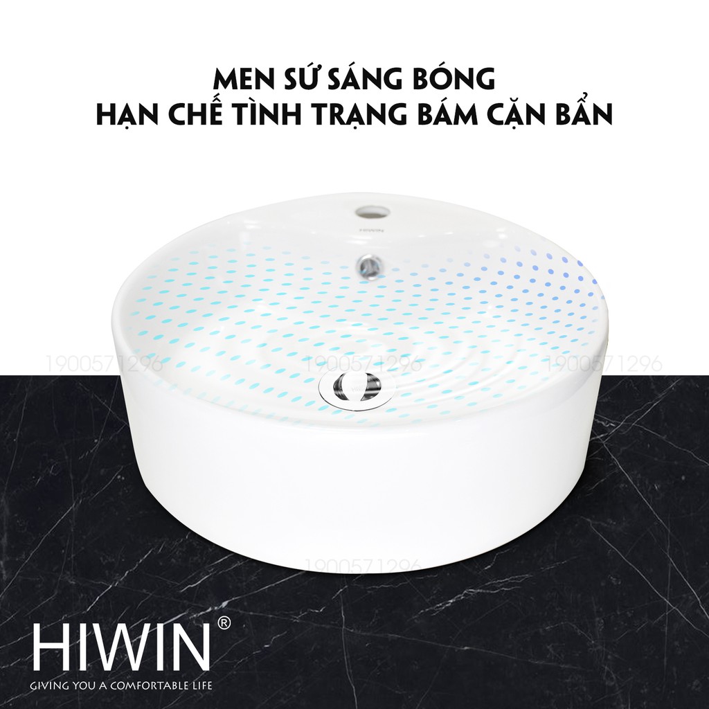 Chậu lavabo trắng sứ dương bàn dáng trụ tròn cao cấp Hiwin LP-8011