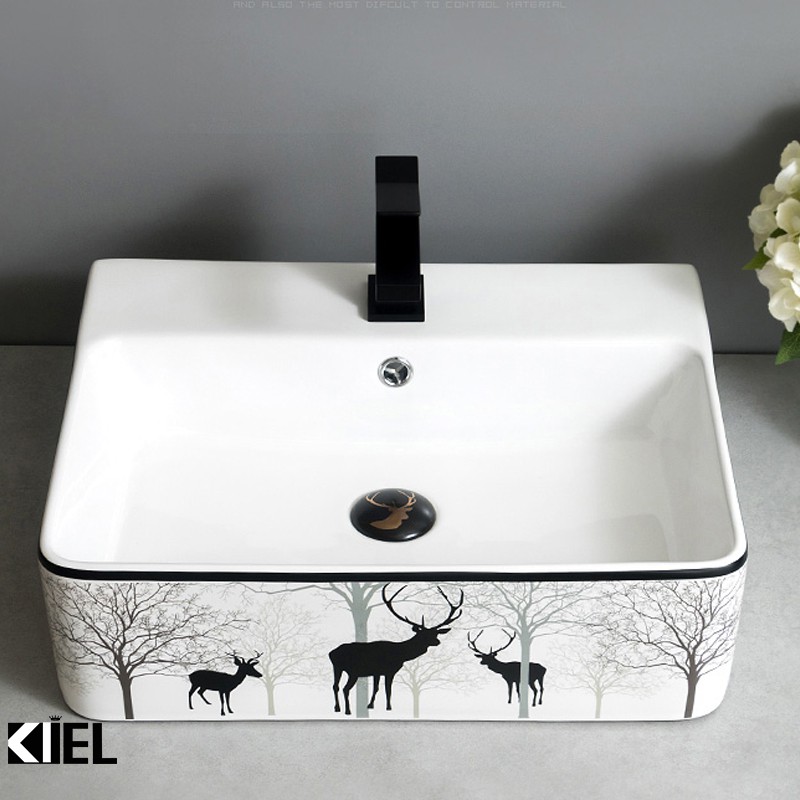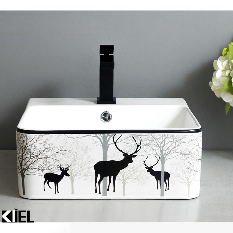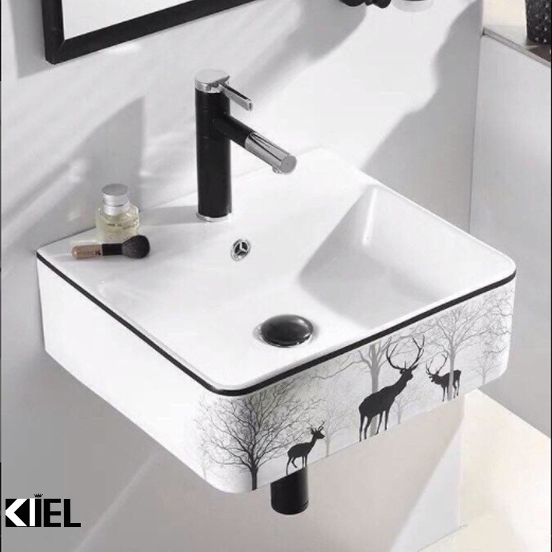 Chậu lavabo treo tường, chậu rửa mặt hoa văn hươu treo tường vuông hàng chính hãng-BẢO HÀNH 10 NĂM