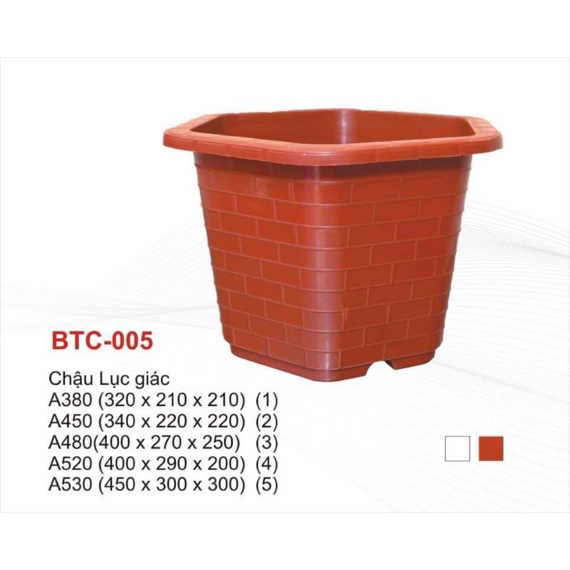 Chậu lục giác FA 350, Fa380, Fa450, FA480 màu đỏ gạch