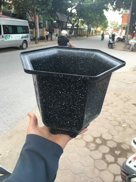 Chậu lục giác vân đáKích thước miệng 23cm, cao 20cm