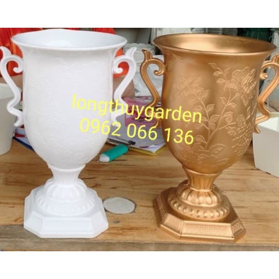 Chậu ly nhựa Bông hồng có kích thước: 170x280x130 cm✨Màu sắc: trắng, sơn đồng