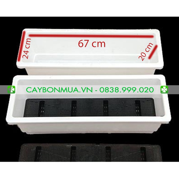 Chậu máng cỡ lớn 67x24x20 - Chậu máng nhựa trắng tinh tế - Chậu trồng cây cho ban công